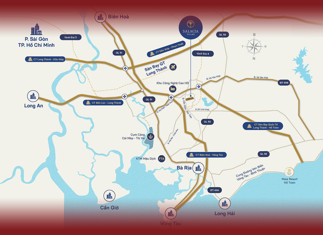 Salacia Villas là khu compound nhà phố và biệt thự cao cấp tọa lạc tại phường Tân Thành, trung tâm khu vực Phú Mỹ, nơi đang phát triển mạnh nhờ hệ thống cảng biển và hạ tầng kết nối vùng. Dự án được phát triển bởi VinaLiving, thành viên của tập đoàn đầu tư VinaCapital, với định hướng kiến tạo không gian sống chuẩn nghỉ dưỡng giữa lòng đô thị.